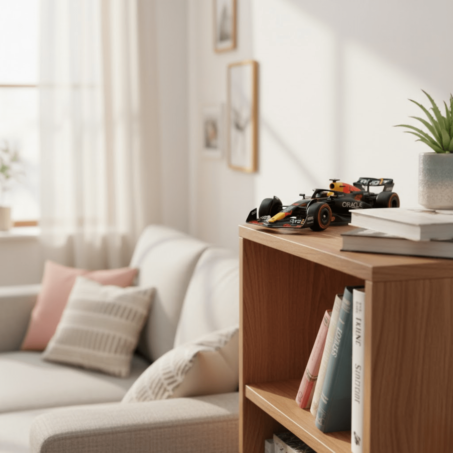 Ja. Het model is duidelijk geïnspireerd op de Red Bull Racing RB20 en herkenbaar aan de juiste kleuren, vormen en race-details zoals je die van de echte auto kent.
